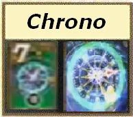 Chrono is an elemental affiliation for objects, attacks, or Magic contained in Magnus. Chrono Magnus display the power of time and attacks often involve illusion. The Sibling God: Che is the ruler of this element.